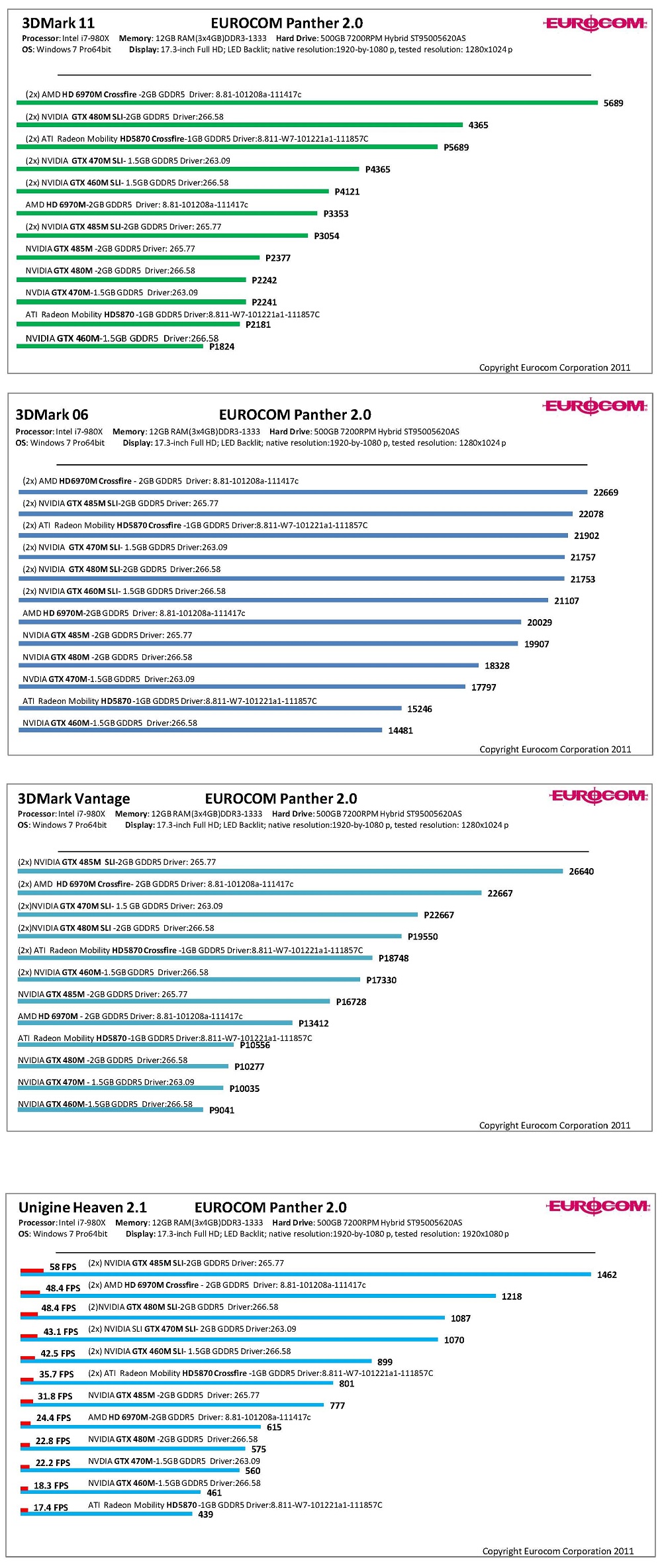 | Graphics NVIDIA GTX 460M, 470M, 480M, 485M and AMD HD6970M, HD5870M in Panther 2.0 (x58); Single, SLI/CrossfireX Jan 28, 2011 Category: Performance |
