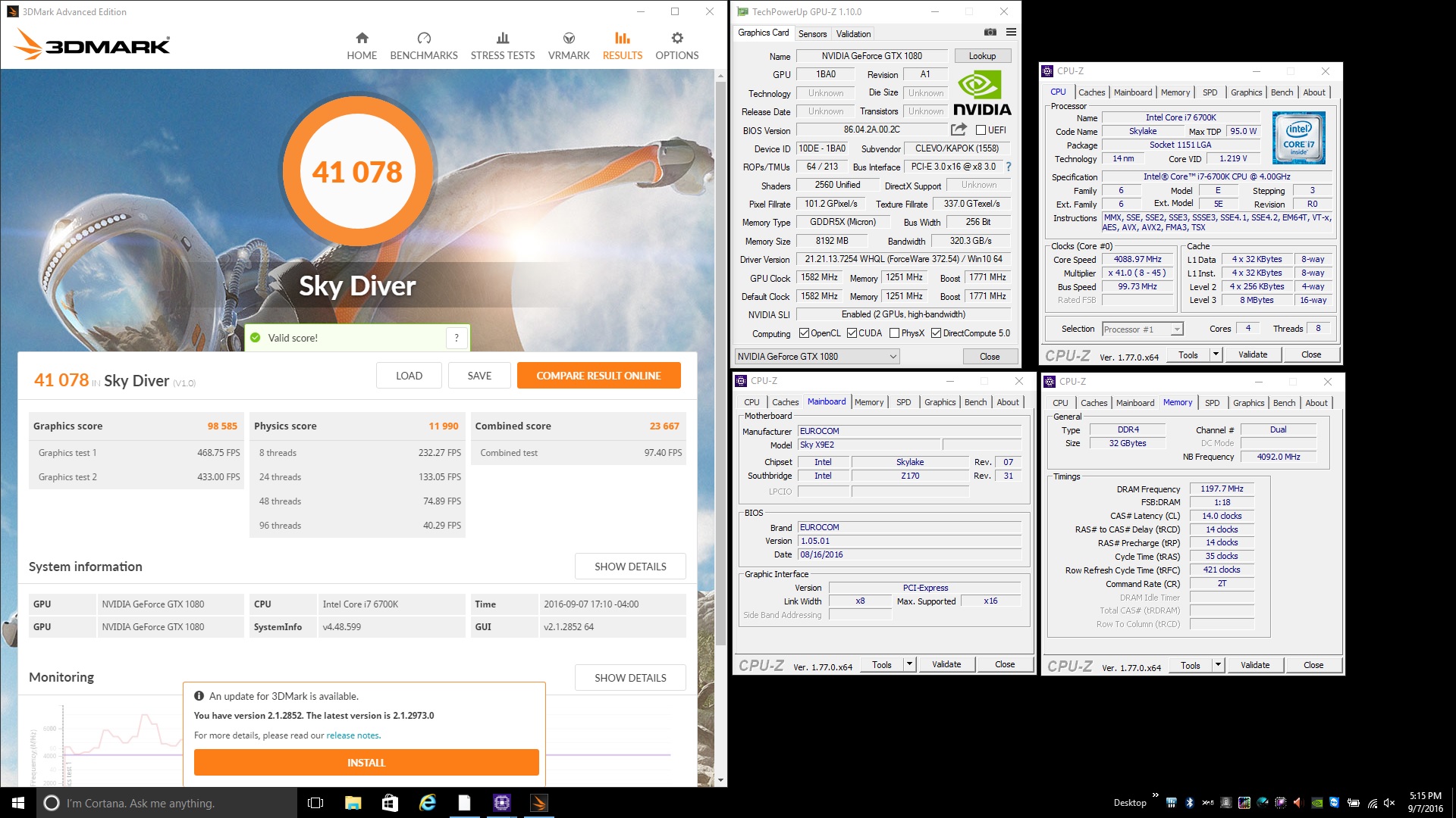 EUROCOM Sky X9E2 3DMark Sky Diver - NVIDIA GeForce GTX 1080 SLI ; Score: 41 078
