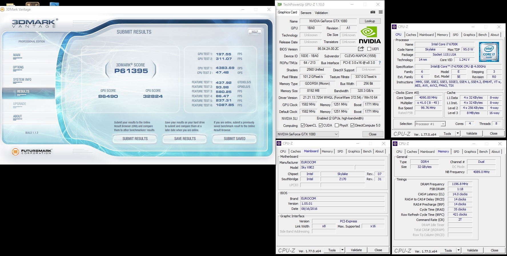 EUROCOM Sky X9E2 - 3DMark Vantage - NVIDIA GeForce GTX 1080 SLI (x2) - Score: P61 395