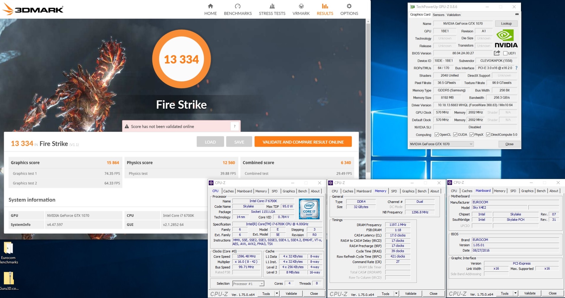 EUROCOM Sky X4E2 - Fire Strike - NVIDIA GeForce GTX 1080 - Score: 13 334