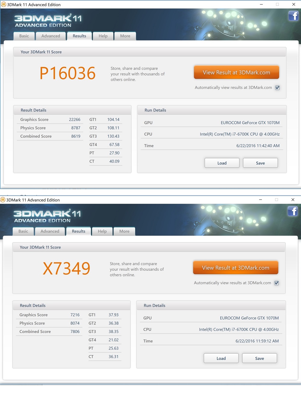 • NVIDIA GeForce GTX 1070 - 3DMark 11 - Score: P16036 - X7349