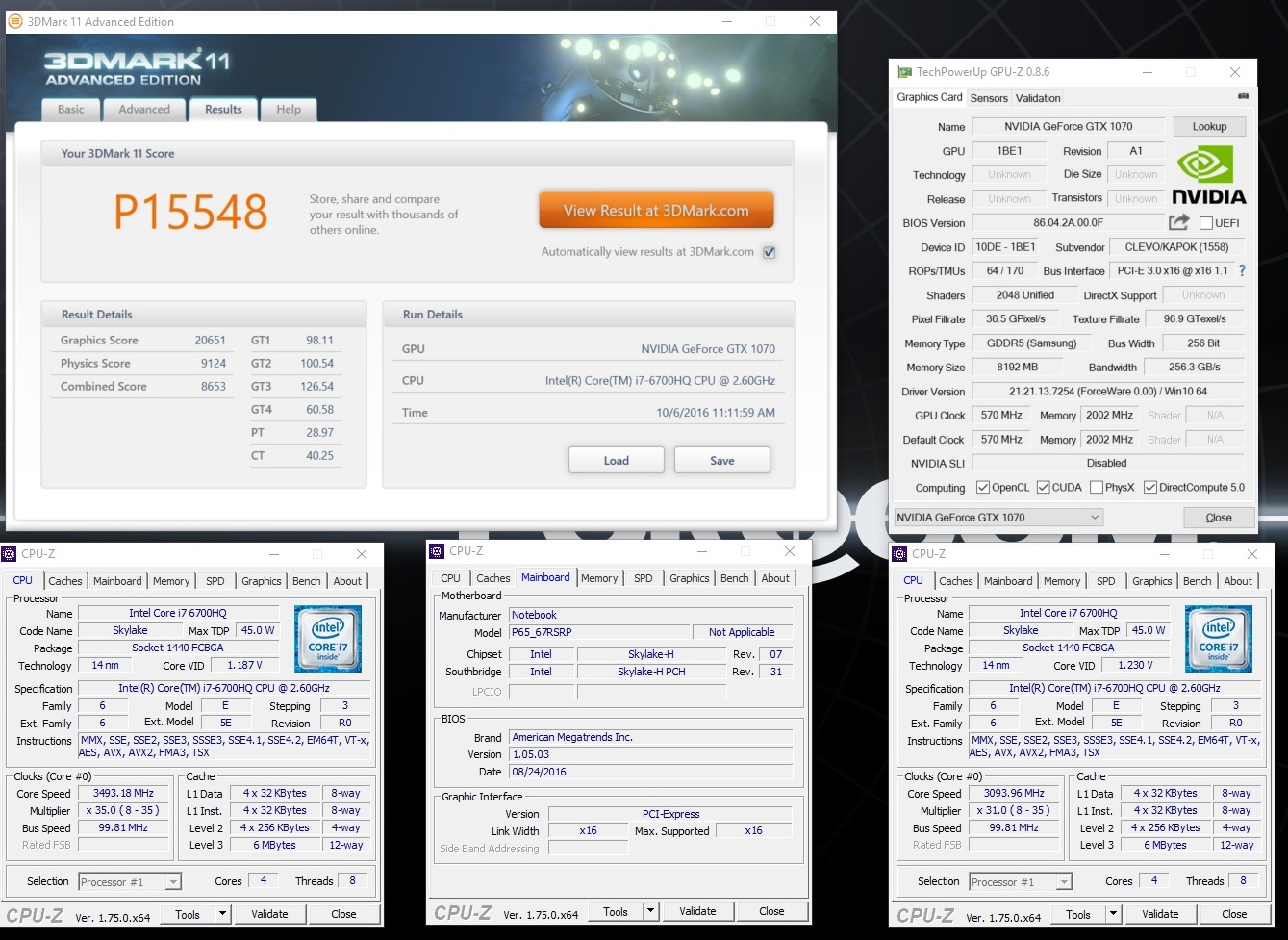 EUROCOM Sky MX5 R2 - NVIDIA GeForce GTX 1070 - 3DMark 11 - Score: P15548