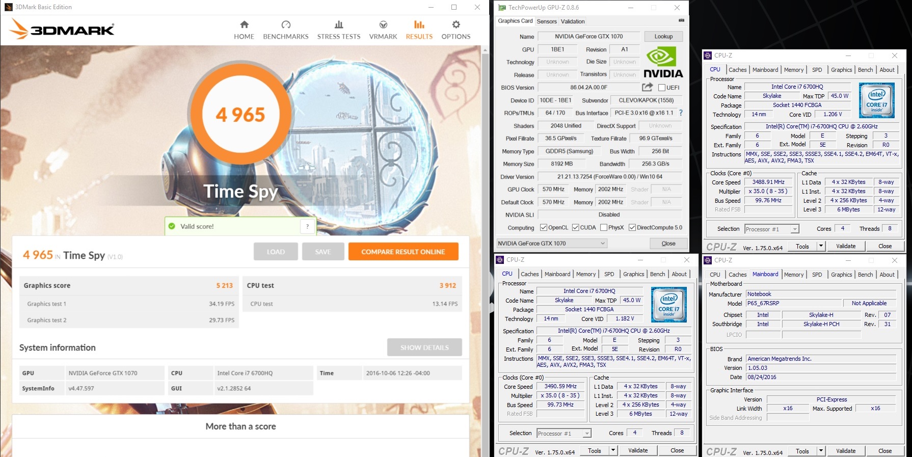 EUROCOM Sky MX5 R2 - NVIDIA GeForce GTX 1070 - 3DMark Time Spy Score: 4 965
