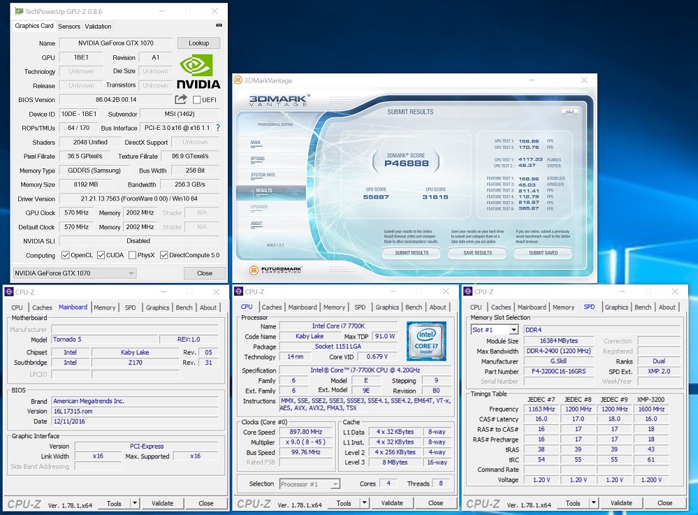 • EUROCOM Tornado F5 - NVIDIA GeForce GTX 1070 - Intel Core i7 7700K - 3DMark Vantage - P46888