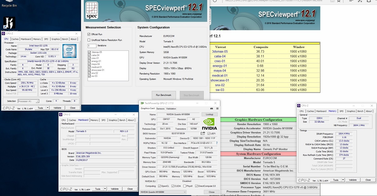 • EUROCOM Tornado F5W - SPECviewperf 12.1 - NVIDIA Quadro M1000M - Intel Xeon E3 1270 v5