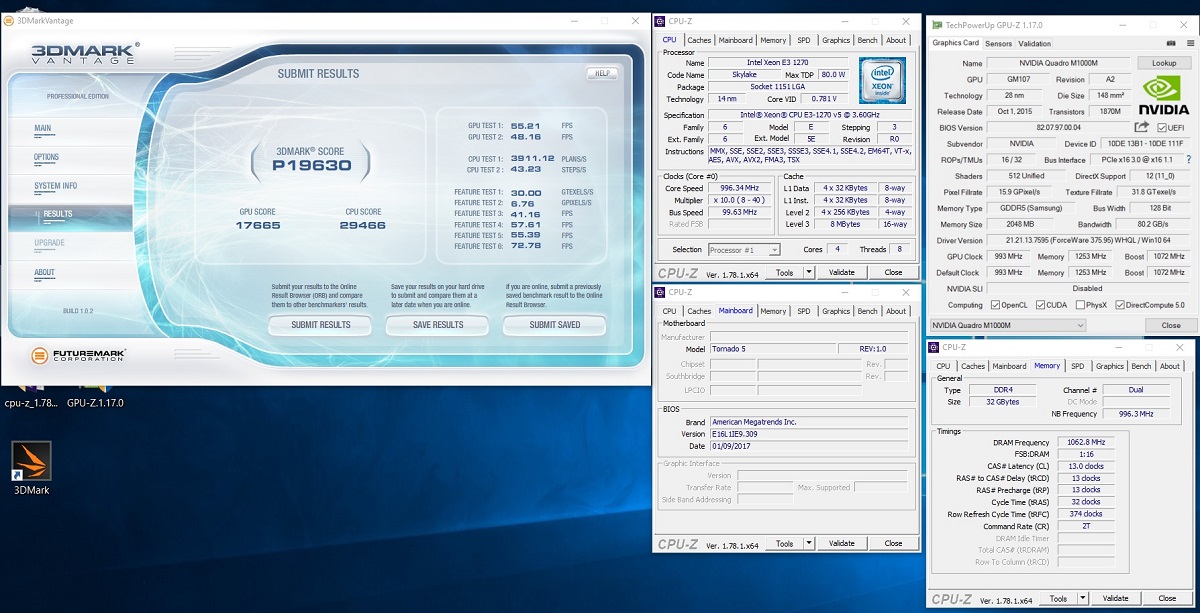 • EUROCOM Tornado F5W - 3DMark Vantage - NVIDIA Quadro M1000M - Intel Xeon E3 1270 v5 - Score: P19630