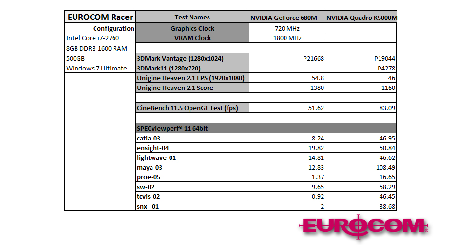 EUROCOM Racer: NVIDIA GTX 680M, Quadro K5000M