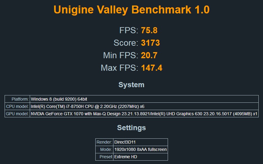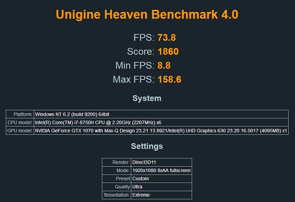 GPU: GTX 1070; 8GB GDDR5; Max Q