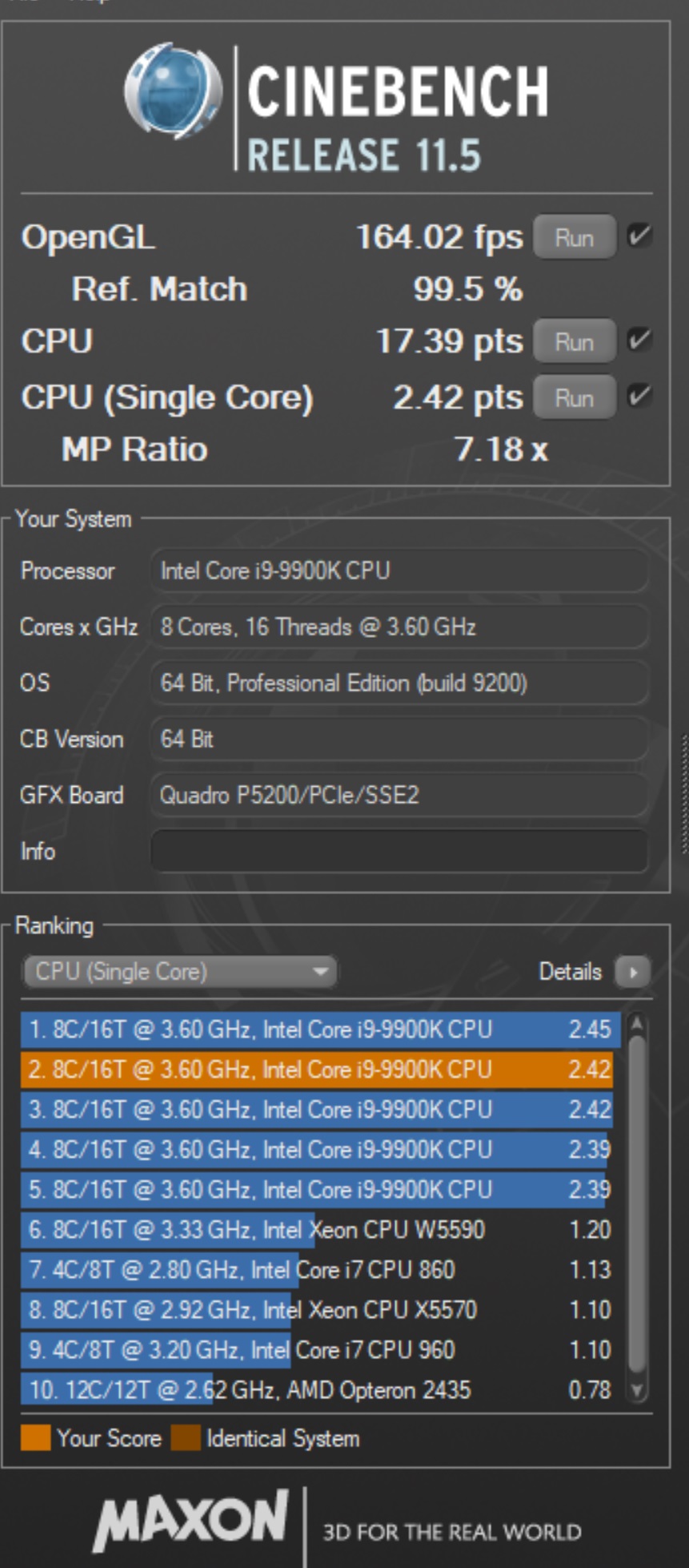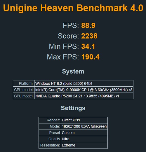 Weight/Dimensions: 4.14kg (9.1lbs); 428x314x24-51mm (17.12x12.56x0.96-2.04-inch) Operating Systems: Microsoft: Server 2016R2, Windows 10; Linux/Ubuntu, VMware VSphere 6.7 U2 Core Logic: Intel C246 Chipset Processor: Intel XEON E series; and/or i9 9900K; LGA1151; up to 8C/16T GPU Technology: GPU-upgradeable; Modular MXM 3.1; Quadro: P5200, P4200 and P3200 Memory: up to 128GB; DDR4 ECC (with Xeon) or non-ECC (with i7/i9); 4x SODIMM sockets Storage: up to 40TB of storage with five physical drives 3x M.2 NVMe PCIe x4 + 2x 2.5" SATA3) Redundancy and Performance: RAID 0/1/5 Network: 1GbE; RJ-45 LAN on-board; VPro; Intel I219-LM chipset I/O Ports: 1x Thunderbolt 3.0; 5x USB 3.1; miniDP; HDMI 2.0; Mic in; Headphone S/PDIF out; Line-in; Line out; RJ-45 / LAN Security: Smartcard Reader, TPM 2.0; Fingerprint; BIOS Disk Encryption; Kensington Lock; HDD BIOS Password Mechanical Design Chassis: Aluminium Alloy (Back Cover and Top Case) and German manufactured resins (Front Cover and Bottom Case) |