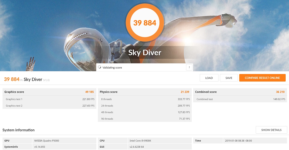 | EUROCOM Sky X7C with Quadro P5000, i9 9900K 8C/16T and 64GB DDR4-3600 Jan 08, 2019 Category: Workstation Performance / Quadro |