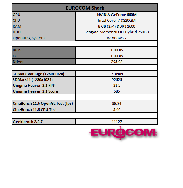 EUROCOM Shark Benchmarks - NVIDIA GeForce GTX 660M