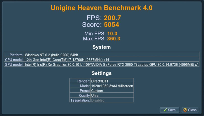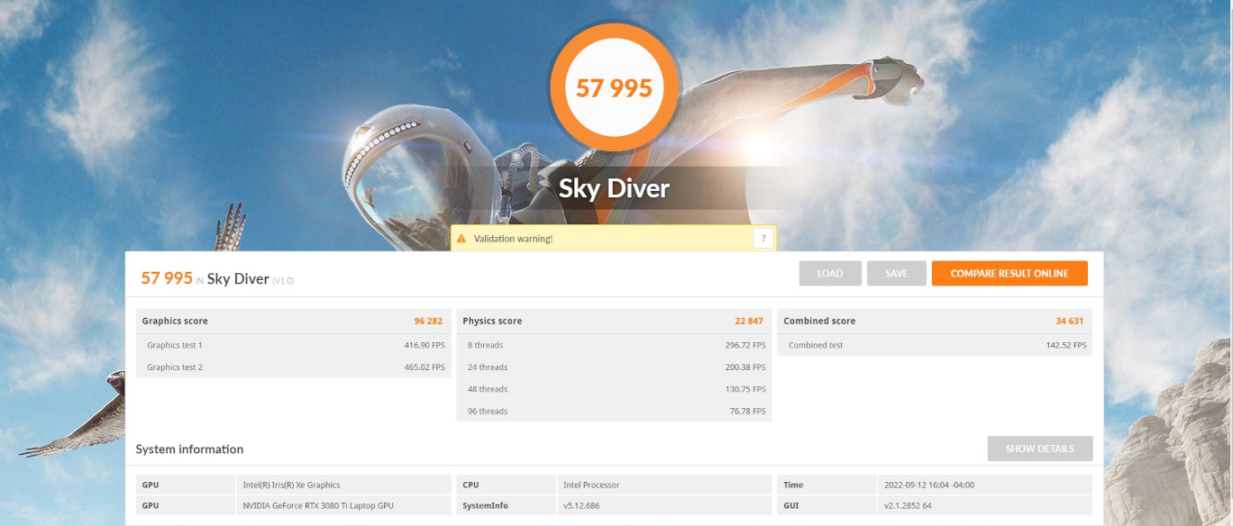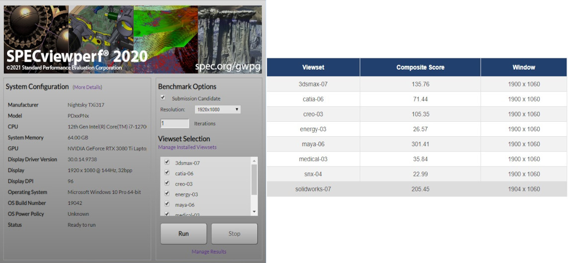 Nightsky TXi317 running NVIDIA RTX 3080Ti (16GB DDR6) and Intel i7-12700H (14C/20T)