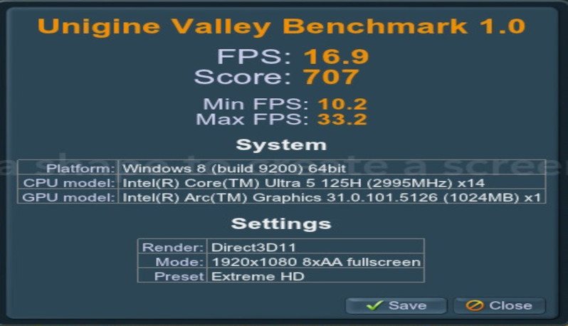 Computer: EUROCOM BLITZ Ultra 14" CPU: Intel Core Ultra 5 125H (Meteor Lake-H, C0) 3000 MHz (30.00x100.0) @ 1995 MHz (20.00x99.8) Motherboard: EUROCOM V5x0TU_Blitz BIOS: 1.07.07eu, 07/04/2024 Chipset: Intel Meteor Lake-H PCH Memory: 98304 MBytes @ 2793 MHz, 46-45-45-90 - 49152 MB PC44800 DDR5 SDRAM - Crucial Technology CT48G56C46S5.M16B1 - 49152 MB PC44800 DDR5 SDRAM - Crucial Technology CT48G56C46S5.M16B1 Graphics: Intel Meteor Lake-P - Integrated Graphics [CLEVO/KAPOK COMPUTER] Intel Arc Graphics, 2097148 KB Graphics: Intel Meteor Lake-U/H NPU - Neural Processing Unit (Movidius VPU3720) Intel NPU, 0 MB Drive: Corsair MP700 PRO, 976.8 GB, NVMe Sound: Intel Meteor Lake-U/H PCH - cAVS (Audio, Voice, Speech) Network: Intel Wi-Fi 6E AX211 160MHz Network: Intel Meteor Lake PCH - I219-LM GbE Controller OS: Microsoft Windows 11 Professional (x64) Build 22631.2861 (23H2) Monitor Name: Chi Mei CMN1457] Monitor Name (Manuf): N140JCA-ELL Name Intel(R) Arc(TM) Graphics PNP Device ID PCI\VEN_8086&DEV_7D55&SUBSYS_A7431558&REV_08\3&11583659&0&10 Adapter Type Intel(R) Arc(TM) Graphics Family, Intel Corporation compatible Adapter Description Intel(R) Arc(TM) Graphics Adapter RAM 2.00 GB (2,147,479,552 bytes) Driver Version 32.0.101.5542 |