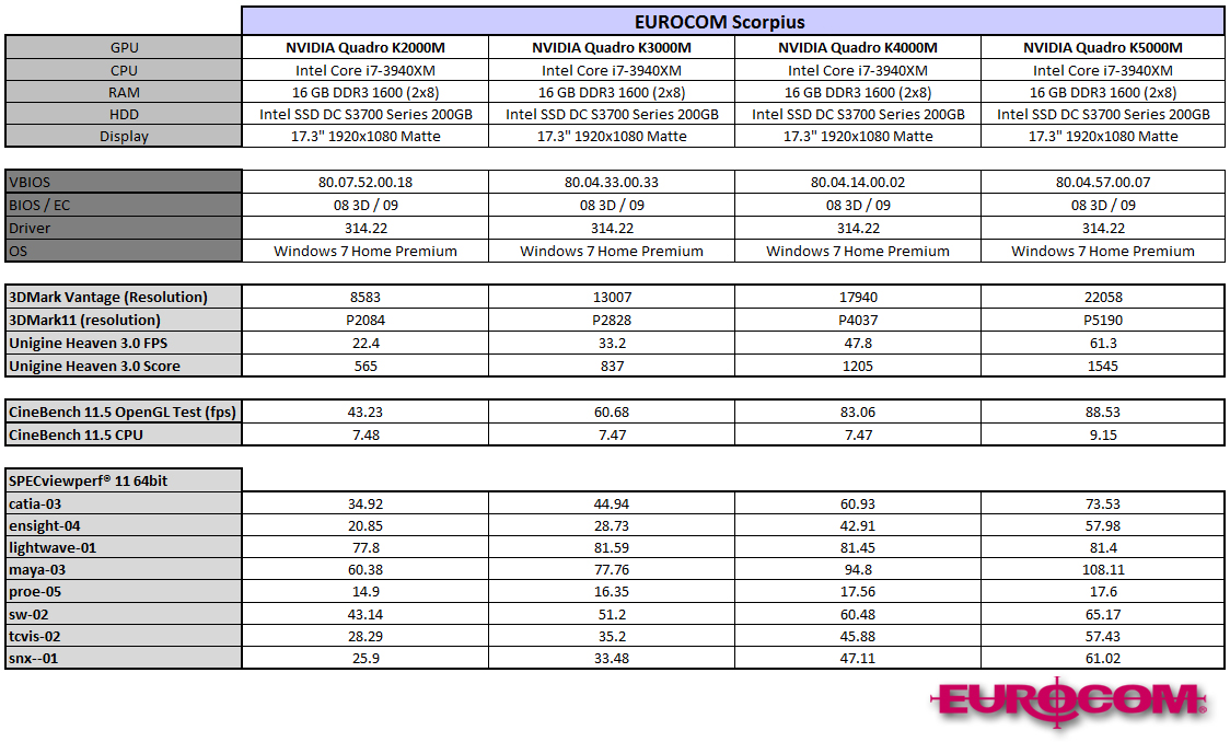 • NVIDIA Quadro K5000M; K4000M; K3000M and K2000M
