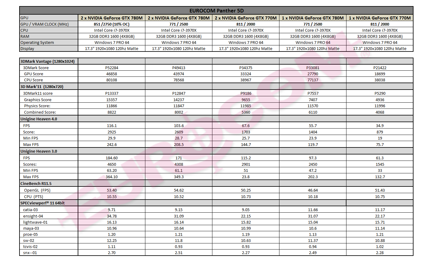• NVIDIA GTX 780M and GTX 770M; single and SLI; with 10% Overclocking