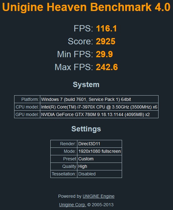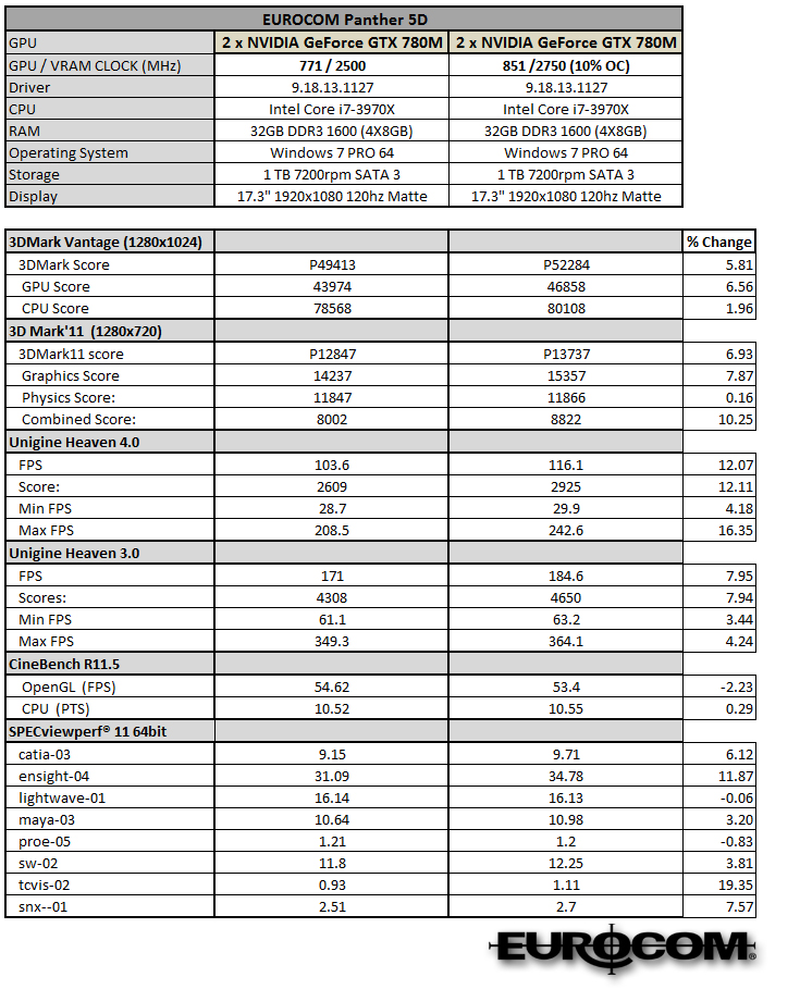 Core Logic: Intel C600/X79 Express Chipset Processor: up to Intel i7-4960X Extreme (6-cores) or up to XEON E5-2697 v2 (12 cores / 24 threads)); socket LGA2011 VGA TECHNOLOGY: Modular MXM 3.0b; Dual (SLI) VGA support NVIDIA: GTX 1070; GTX 780M; GTX 680M(4GB DDR5) or QUADRO P5000 (16GB); P3000 (8GB) K5100M (8GB); K5000M (4GB); K3100M (4GB); K3000M or K2000M MEMORY: up to 32GB; DDR3-1333/1600; four physical SODIMM sockets EXPANSION: Built-in ExpressCard 34/54 slot STORAGE: up to 32TB of storage with four physical SSD, Hybrid or HDD, RAID 0/1/5/10 support; SATA 6Gb/s OPTICAL DRIVE BAY: DVD-RW or Blu Ray Burner or 4th Hard Drive I/O PORTS: 3x USB 3.0; 2x USB 2.0; eSATA; Firewire-800 (TI XIO2221ZAY); DisplayPort v1.2; DVI-I (SL); HDMI 1.4a out w/HDCP; Headphone; Microphone; S/PDIF out; Line-in; RJ-45 / LAN COMMUNICATION: built-in 10/100/1000Mb Base-TX Ethernet LAN (Intel 82579V); WLAN (optional); Bluetooth v2.1+EDR (optional); 2M Video Webcam (built-in) SECURITY: TPM 1.2; Fingerprint, Kensington Lock KEYBOARD: Backlit; full-size with separate numeric keypad; W/A/S/D gaming key; built-in touchpad with multi-gesture and scrolling functions; 6 touch sensor instant buttons: Volume Up/Down, Mute, WLAN, BT, Webcam WEIGHT/DIMENSIONS: 5.5kg (12.1lbs); 419(W)x286(D)x57.9-62.1(H)mm (16.76x11.44x2.31-2.48inch) |