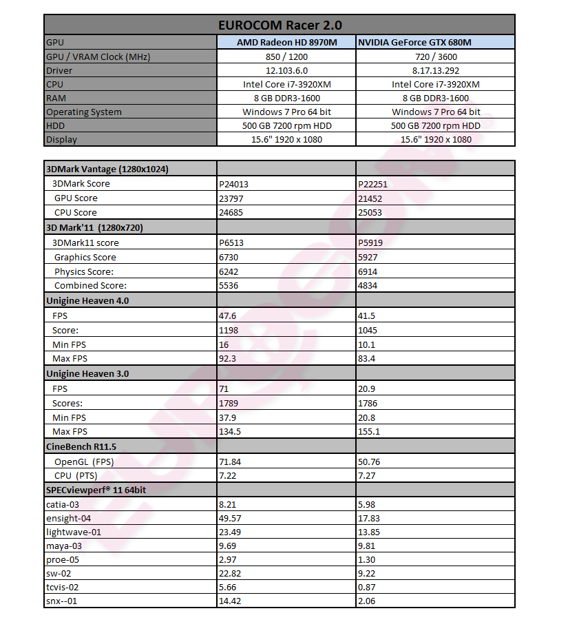 • NVIDIA GeForce GTX 680M (4GB DDR5) vs AMD Radeon HD8970M (4GB DDR5)