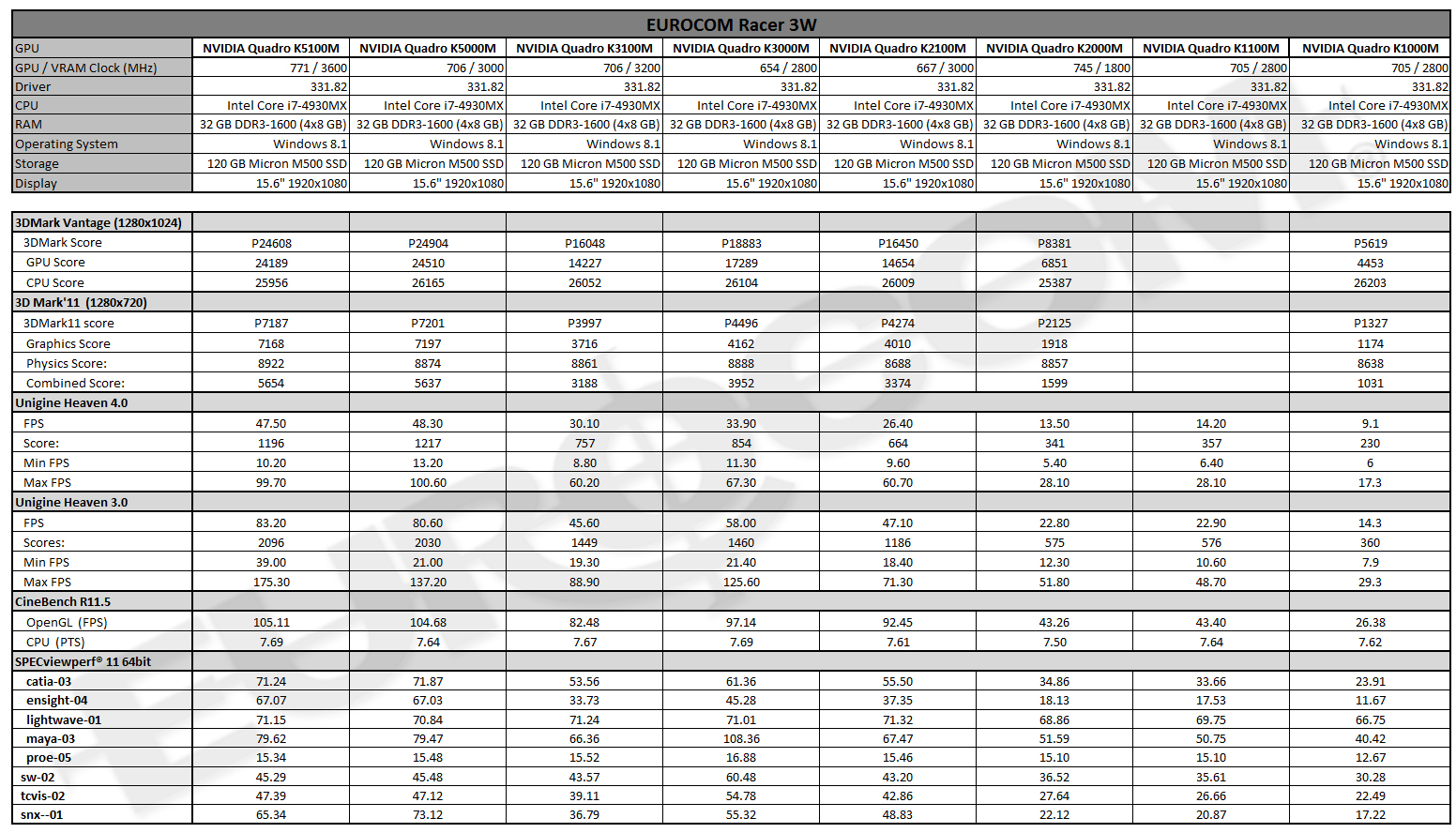 • NVIDIA Quadro K5100M, K5000M, K3100M, K3000M, K2000M, K1100M, K1000M in EUROCOM Racer 3W
