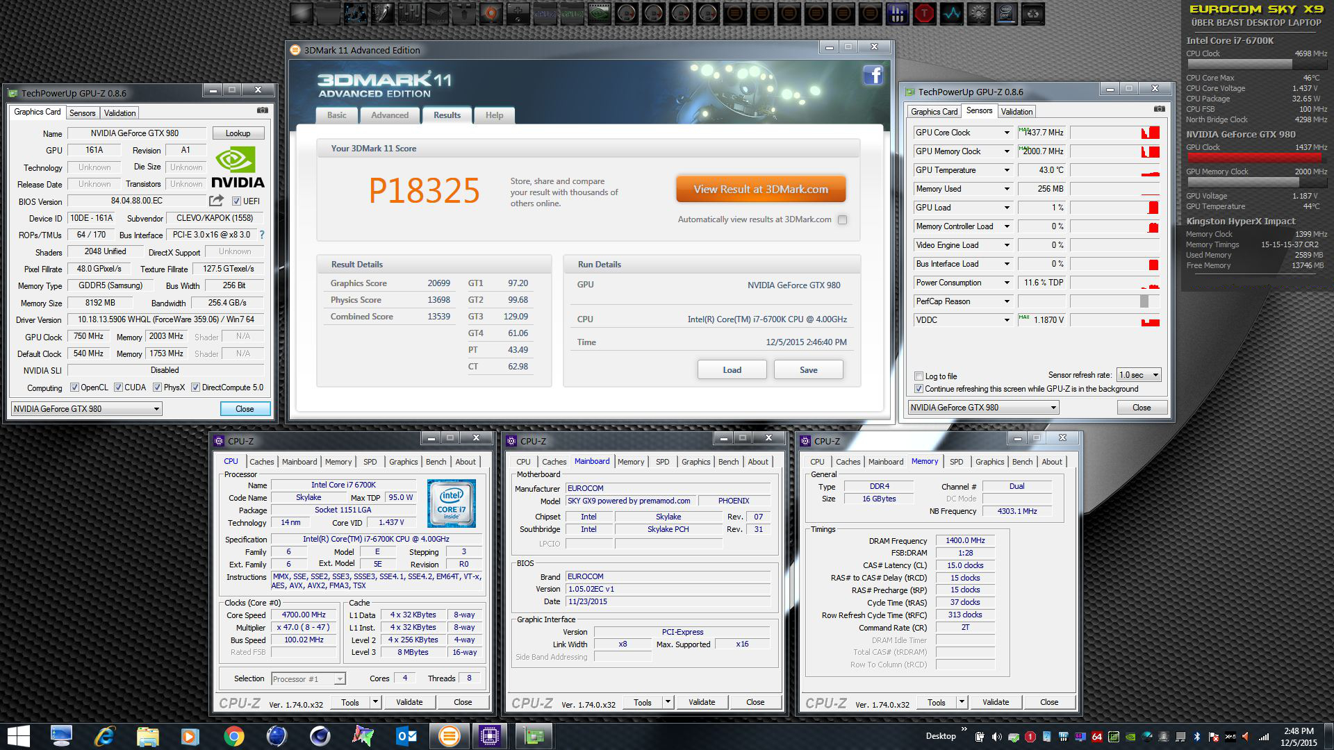 • EUROCOM Sky X9 - NVIDIA GeForce GTX 980 (desktop) and Intel i7-6700K Skylake (desktop)