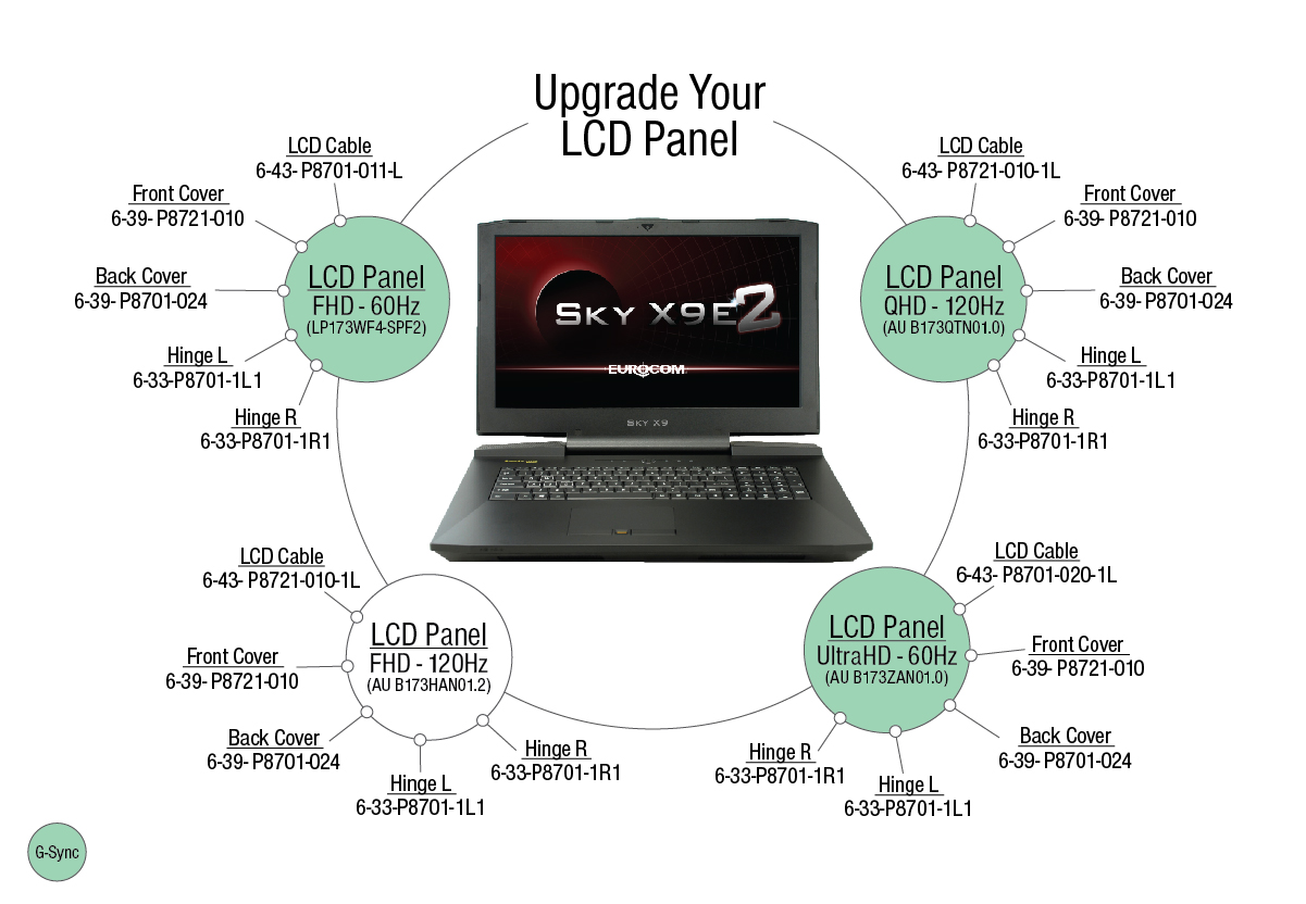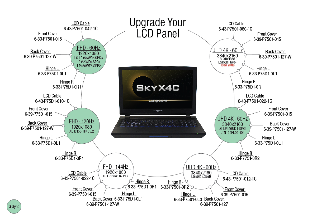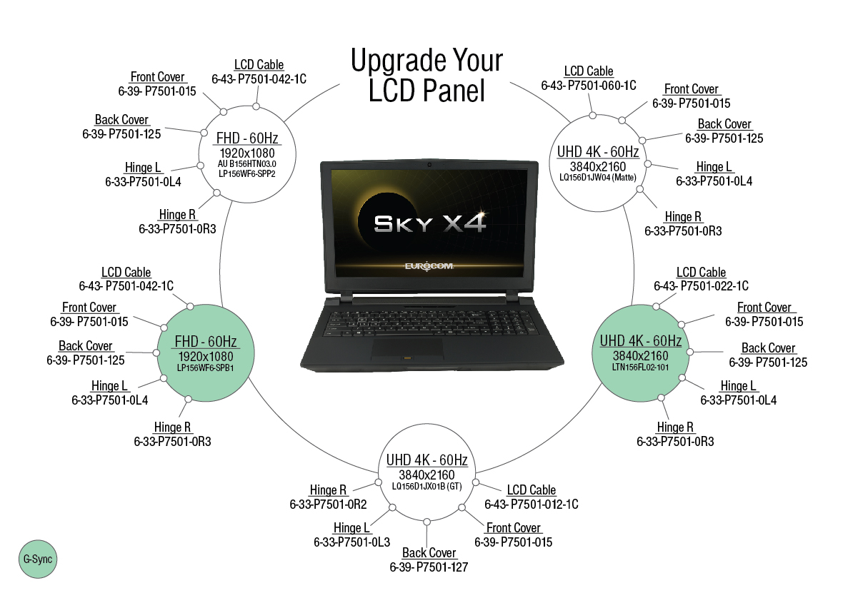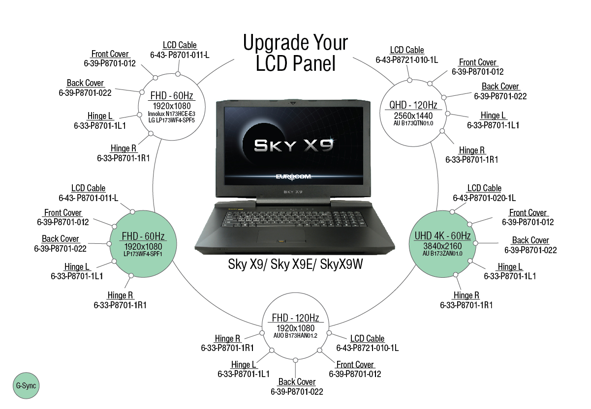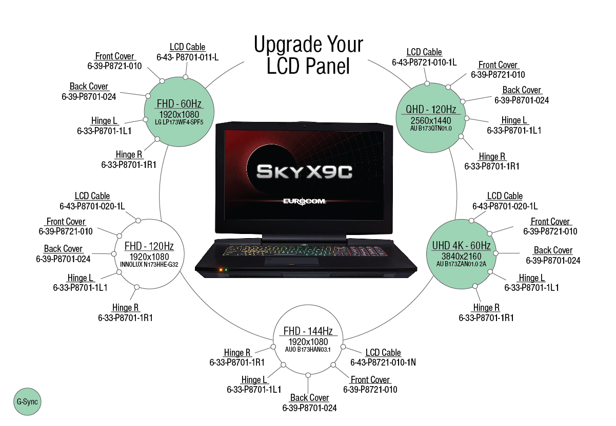 | LCD Upgrades: P870DM2/DM3; Sky X9E2 |