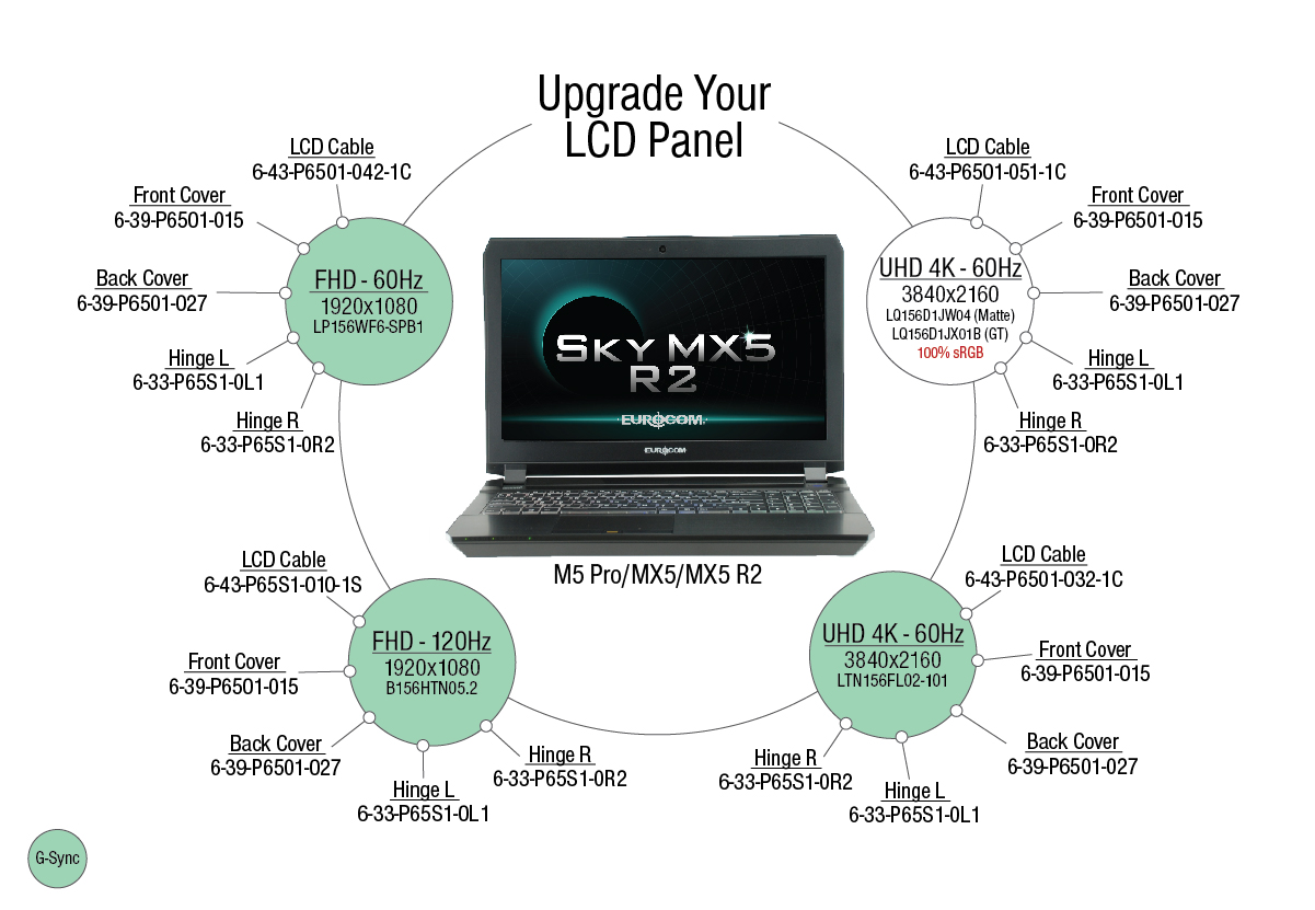 | LCD Upgrade Chart: EUROCOM Q5 / P957HR |