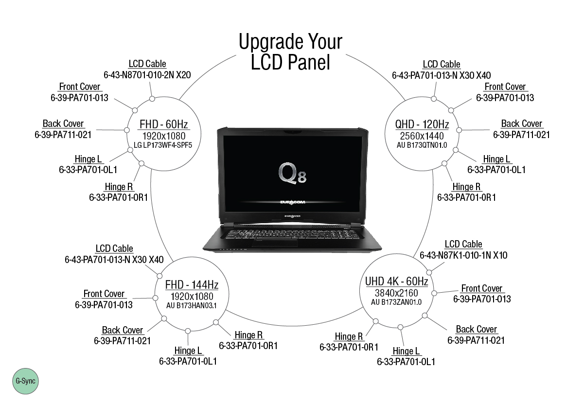 | LCD Upgrade Chart: EUROCOM Q8 / PA71ES |