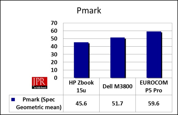 Thanks to its fast CPU, abundance of memory and high-end graphics card, the Eurocom P5 Pro turned in the best performance we have ever recorded for a mobile workstation. On the SPECviewperf test, which focuses solely on graphics performance, the P5 Pro beat all competitors — often by a wide margin — even surpassing the performance of some entry-level and midrange workstations.