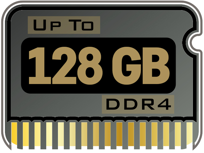 | Memory: | Four 260-pin, 1.2V, SODIMM sockets DDR4-2666/2933/3000/3200/3600; up to 128GB |
