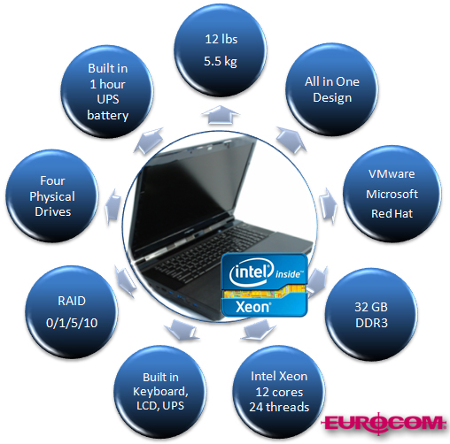 | Feb 20, 2014 Eurocom Mobile Server Technology A Mobile Server is a computer system (computer hardware and operating system), that responds to requests across a computer network to provide, or help to provide, a network service, while being easily portable in a laptop form factor. In contrast to large data centers or rack servers, the Mobile Server is designed for on-the-road development and adhoc deployment. It allows for quick deployment and can be easily transported (hand carried) into emergency, disaster, or temporary environments where traditional servers are not feasible due to their power requirements, size, etc. The main beneficiaries of so-called "server on the go" technology include network managers, software or database developers, training centers, military personnel, law enforcement, forensics, emergency relief and service organizations. PDF Document |